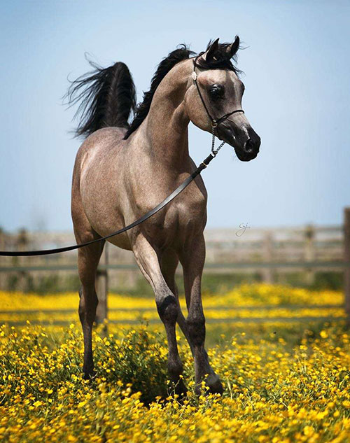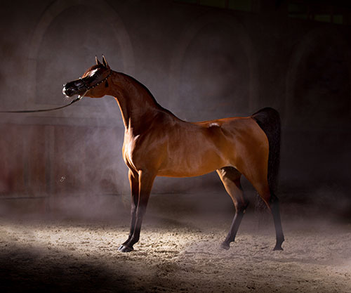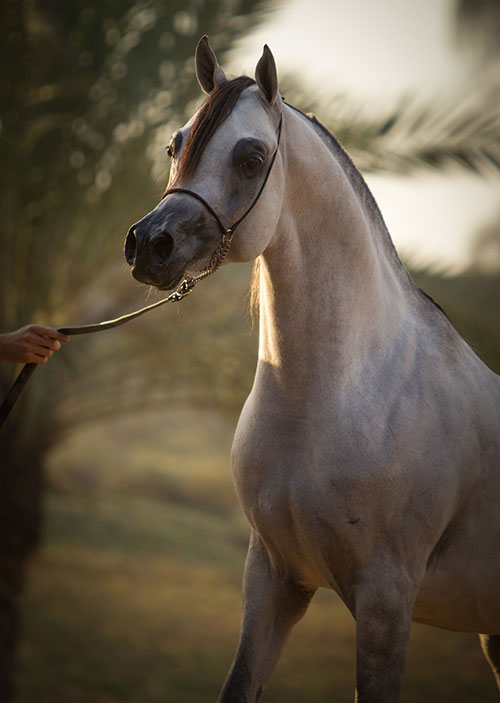 (Marwan Al Shaqab x JFN Bint Ludhan) For many, she is the most beautiful living Arabian mare in the world. Najdah Al Zobair – the first UAE-bred World Champion – has traversed the globe, winning the highest accolades on all three continents. She drips with breed type. Like a piece of Godiva chocolate, she is a vision to behold, created by Mother Nature and Sheikh Abdulla. And even better, Najdah is creating an important legacy – a healthy and beautiful line – already two generations deep to go forward with. |